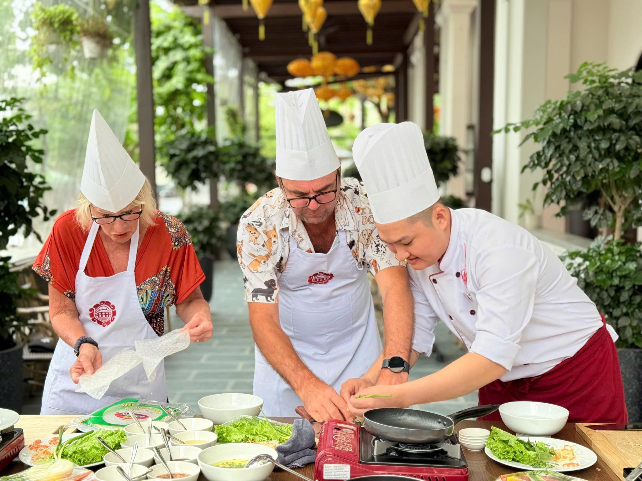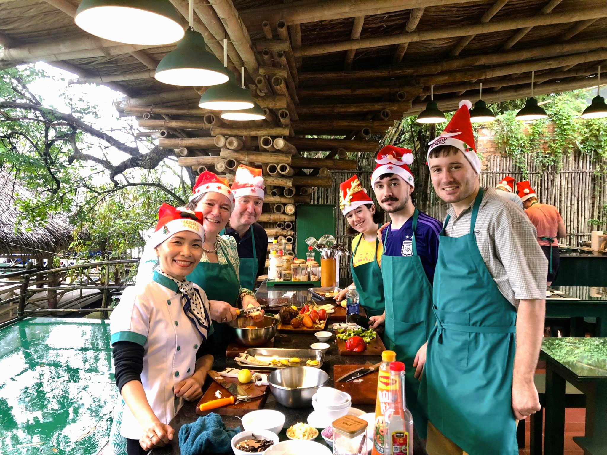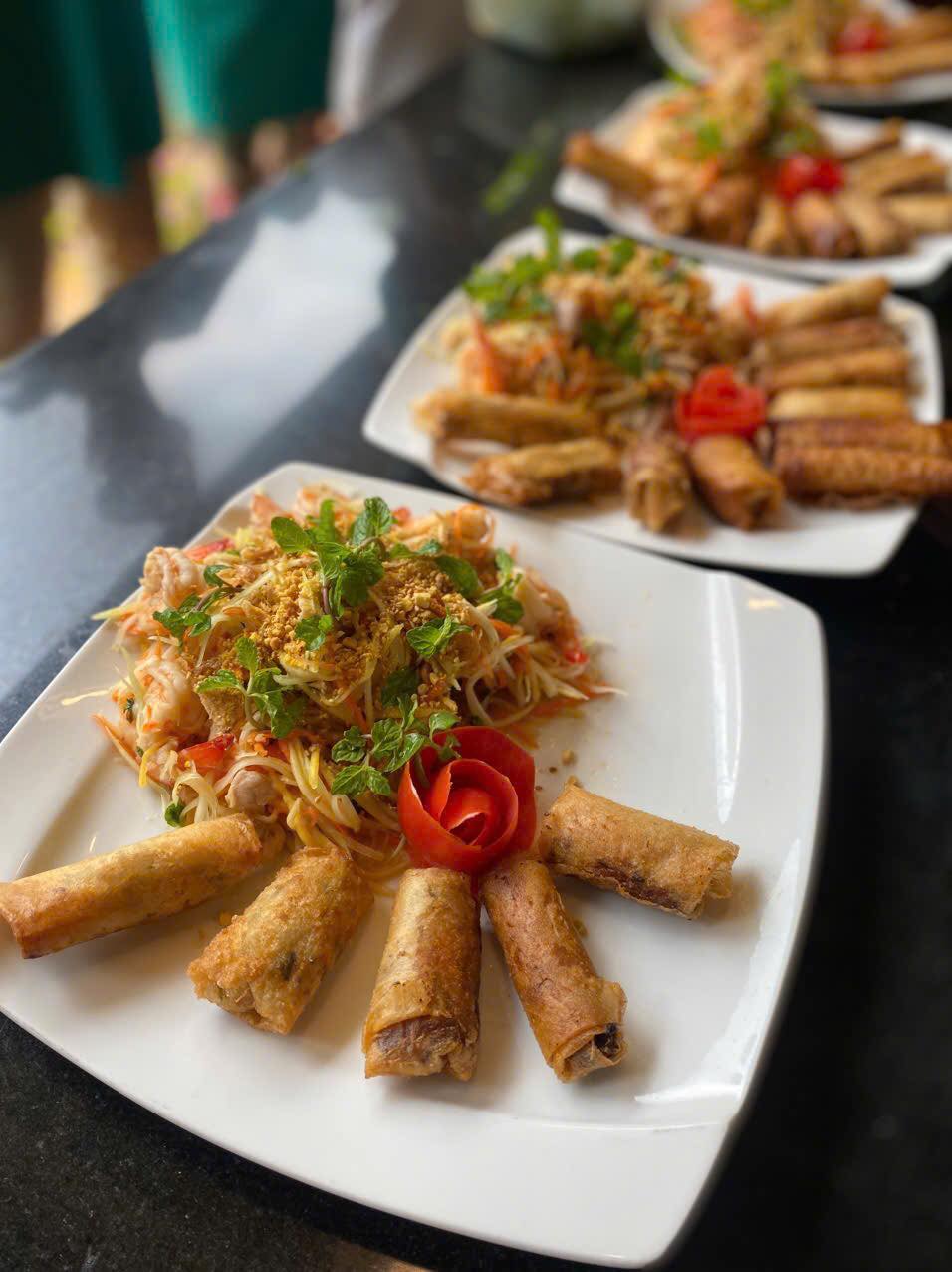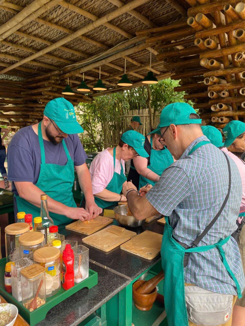 From the market, you’ll hop on a scenic boat ride to a charming riverside cooking venue. The peaceful cruise offers a glimpse into rural life, with fishermen casting their nets and water buffalos grazing along the banks. Once you arrive, a warm welcome awaits from your local chef, who will guide you step-by-step in preparing signature Vietnamese dishes — from fragrant pho to crispy banh xeo pancakes.