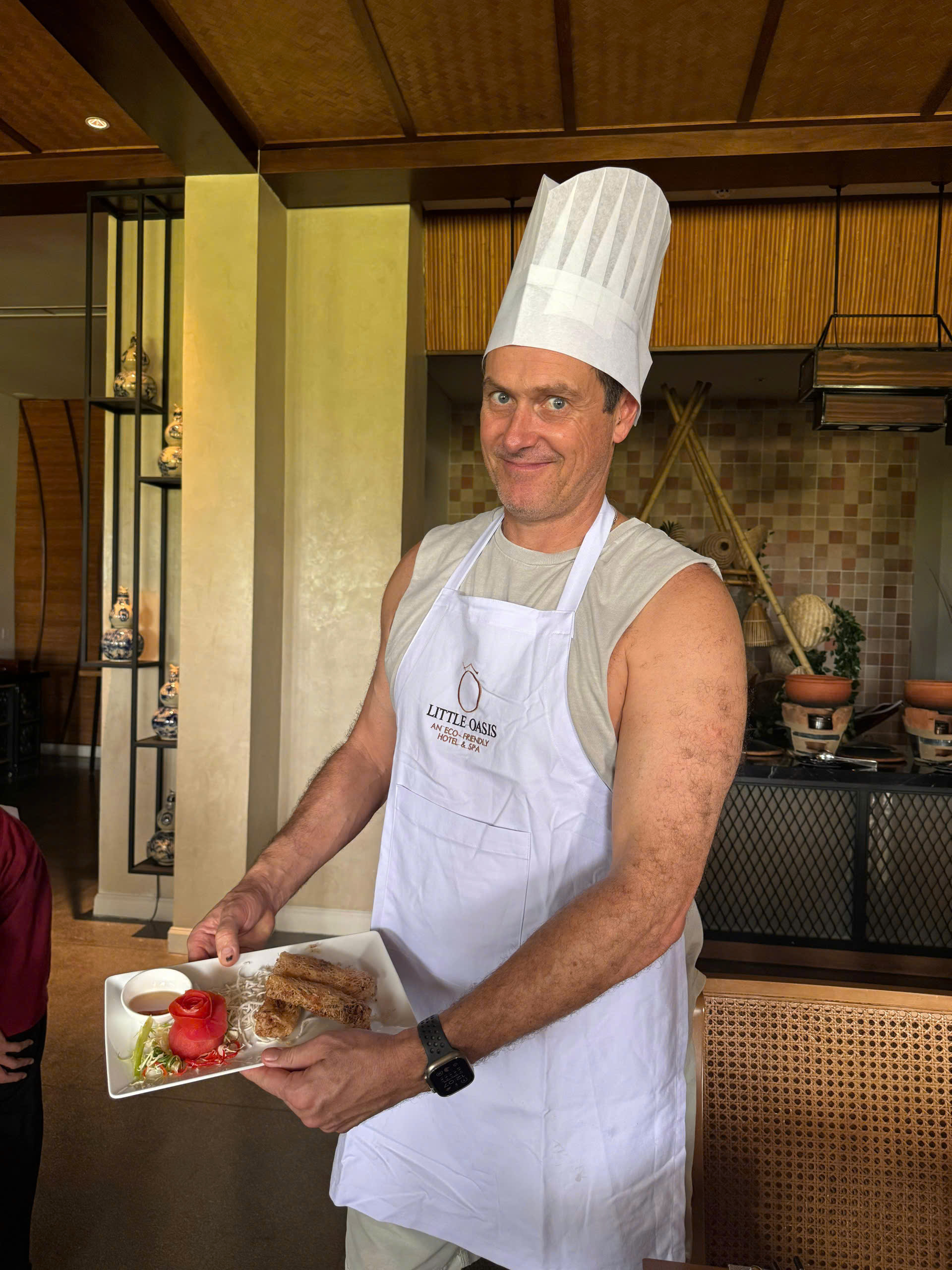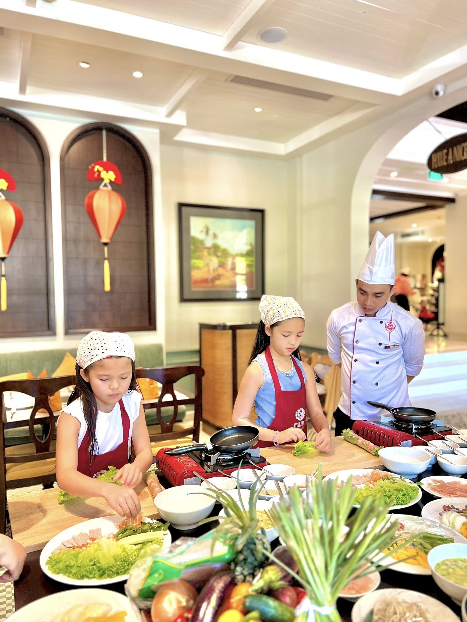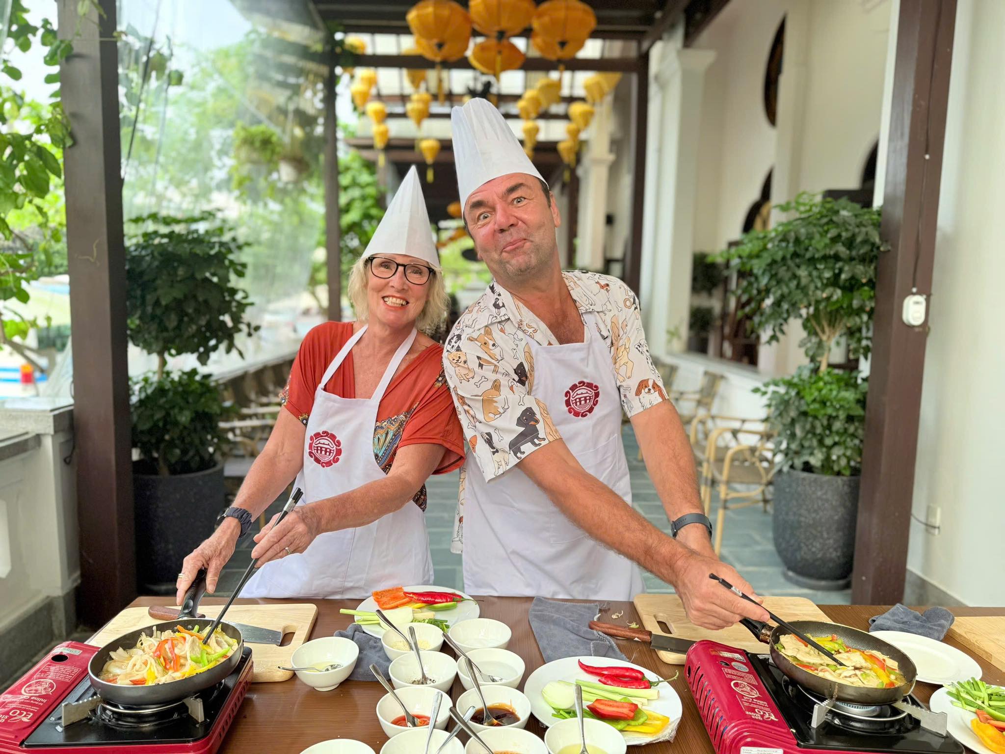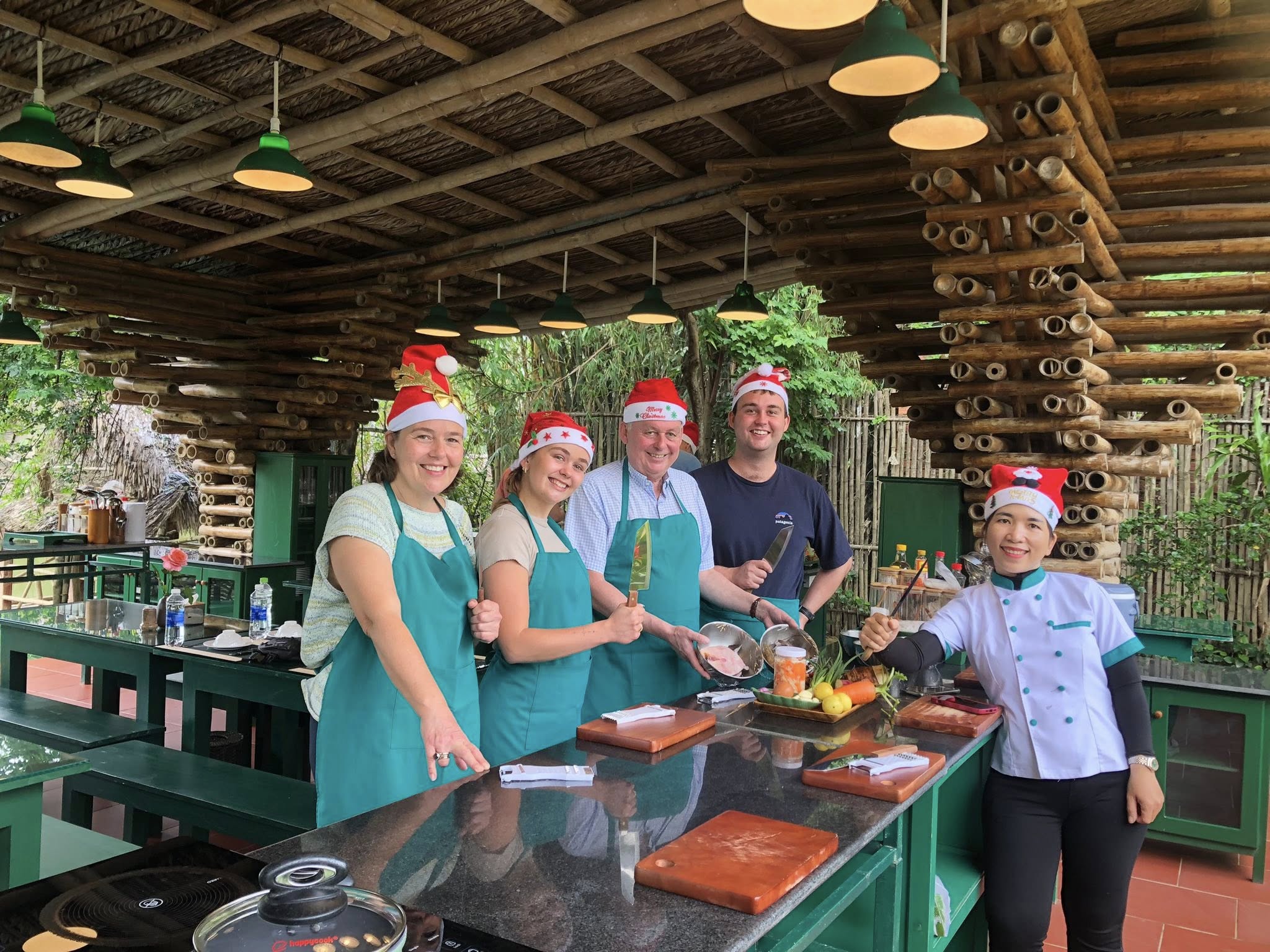 From the market, you’ll hop on a scenic boat ride to a charming riverside cooking venue. The peaceful cruise offers a glimpse into rural life, with fishermen casting their nets and water buffalos grazing along the banks. Once you arrive, a warm welcome awaits from your local chef, who will guide you step-by-step in preparing signature Vietnamese dishes — from fragrant pho to crispy banh xeo pancakes.